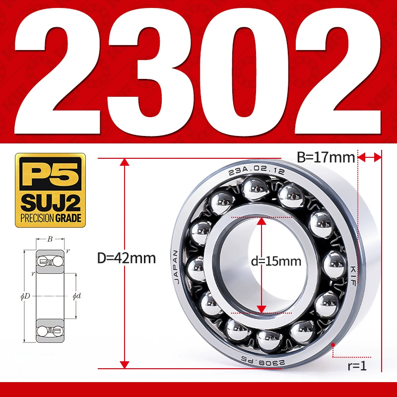 Vòng bi – bạc đạn tự lựa 2302 (Bi cầu – 2 dãy – 15*42*17 mm)
