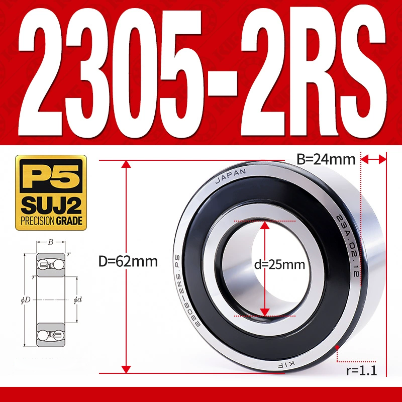 Vòng bi – bạc đạn tự lựa 2305-2RS (Phớt cao su – 25*62*24 mm)