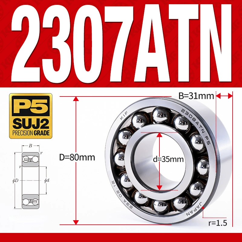 Vòng bi - bạc đạn tự lựa 2307ATN (Chịu nhiệt - vòng cách bi Nylon - 35*80*31 mm)