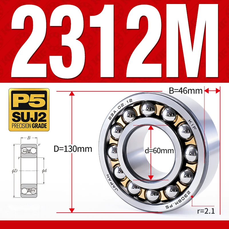 Vòng bi - bạc đạn tự lựa 2312M (Chịu nhiệt - vòng cách bi Đồng - 60*130*46 mm)