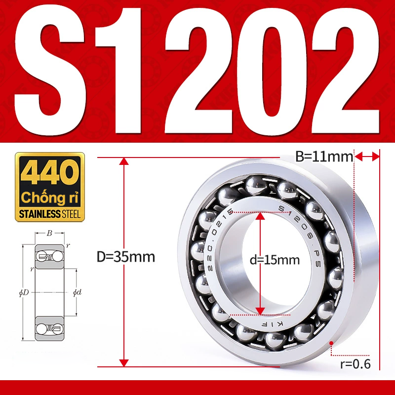 Vòng bi - bạc đạn tự lựa S1202 (Chống ăn mòn - Inox 404C - 15*35*11 mm)