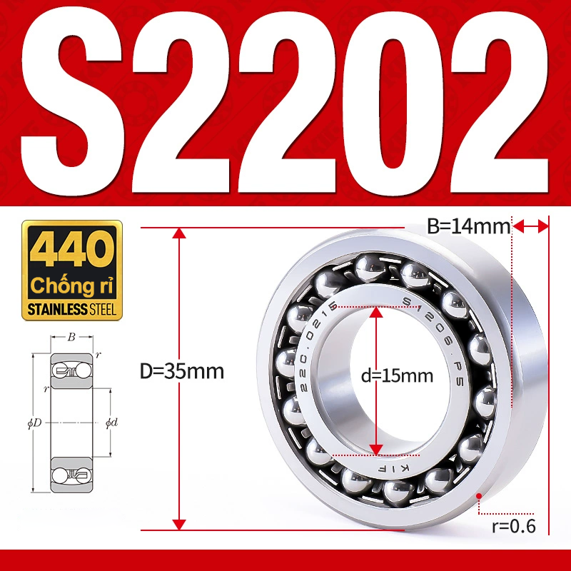 Đặt mua Vòng bi - bạc đạn tự lựa S2202 (Chống ăn mòn - Inox 404C - 15*35*14 mm)