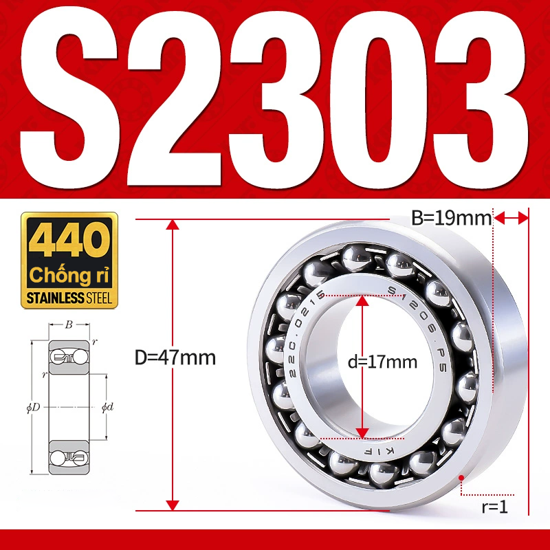 Đặt mua Vòng bi - bạc đạn tự lựa S2303 (Chống ăn mòn - Inox 404C - 17*47*19 mm)