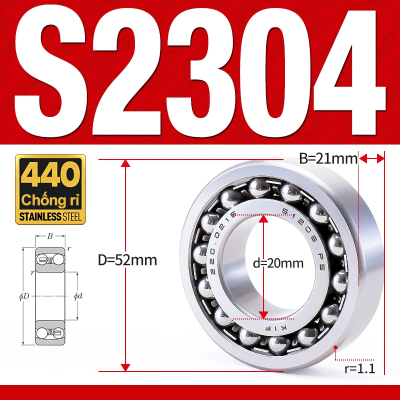 Vòng bi - bạc đạn tự lựa S2304 (Chống ăn mòn - Inox 404C - 20*52*21 mm)