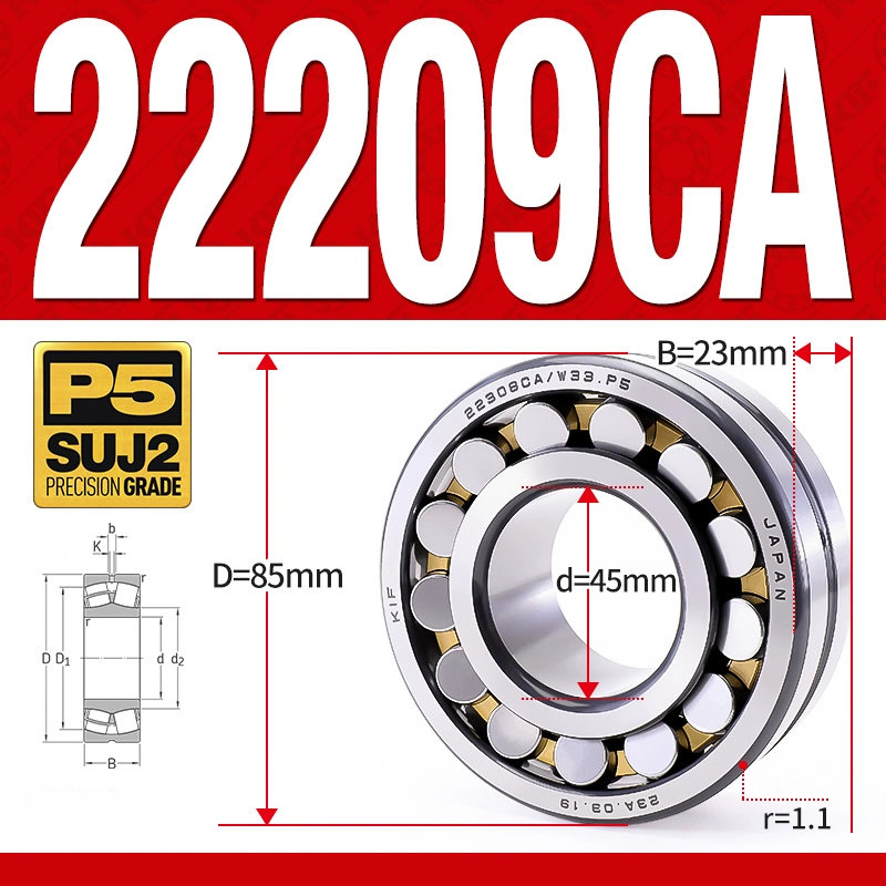 Vòng bi cà na tự lựa 2 dãy – bạc đạn cà na 22209CA/W33 (Có rãnh bôi trơn – lồng cách bi Đồng – kt 45*85*23 mm)
