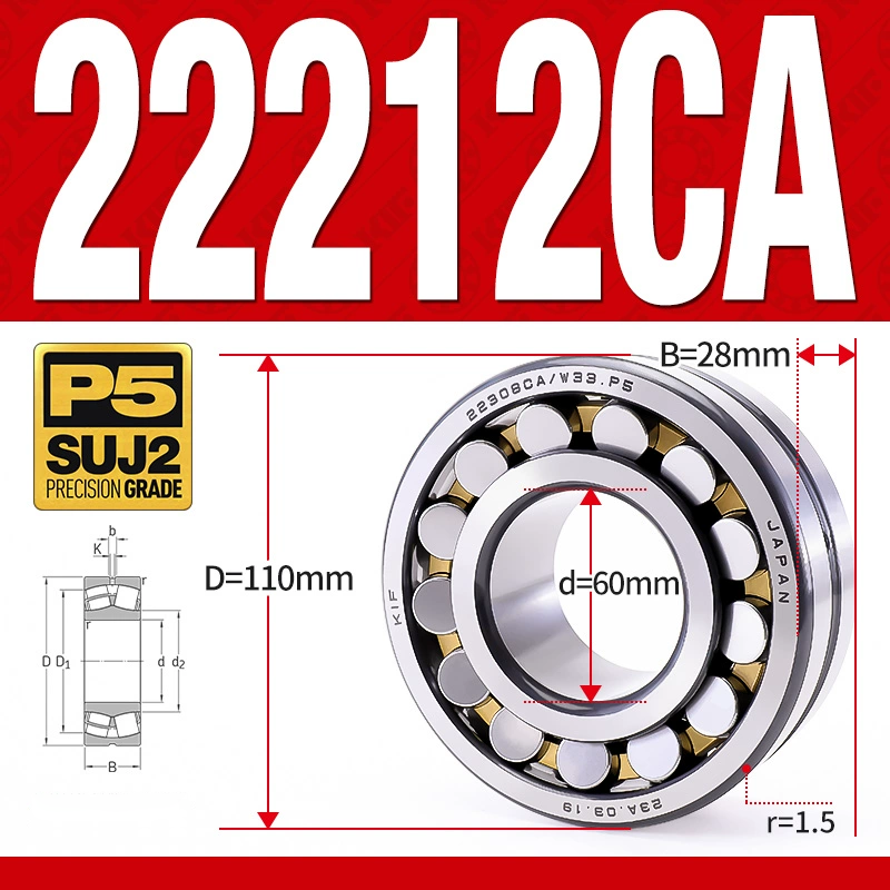 Vòng bi cà na tự lựa 2 dãy – bạc đạn cà na 22212CA/W33 (Có rãnh bôi trơn – lồng cách bi Đồng – kt 60*110*28 mm)