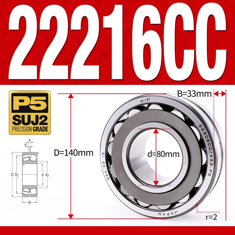 Vòng bi cà na tự lựa 2 dãy – bạc đạn cà na 22216CC/W33 (Có rãnh bôi trơn – lồng cách bi Thép – kt 80*140*33 mm)