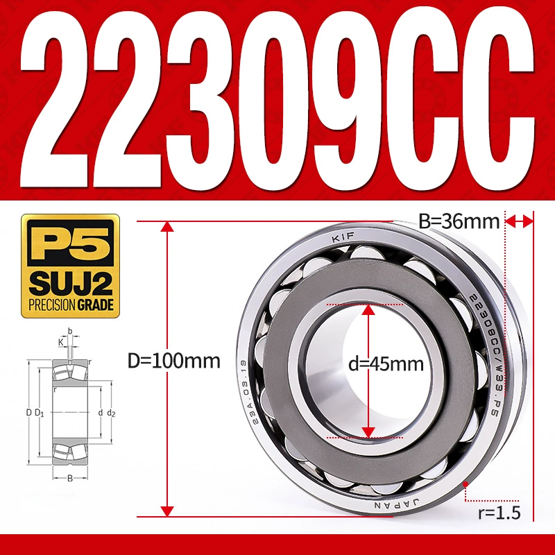 Vòng bi cà na tự lựa 2 dãy - bạc đạn cà na 22309CC/W33 (Có rãnh bôi trơn - lồng cách bi Thép - kt 45*100*36 mm)