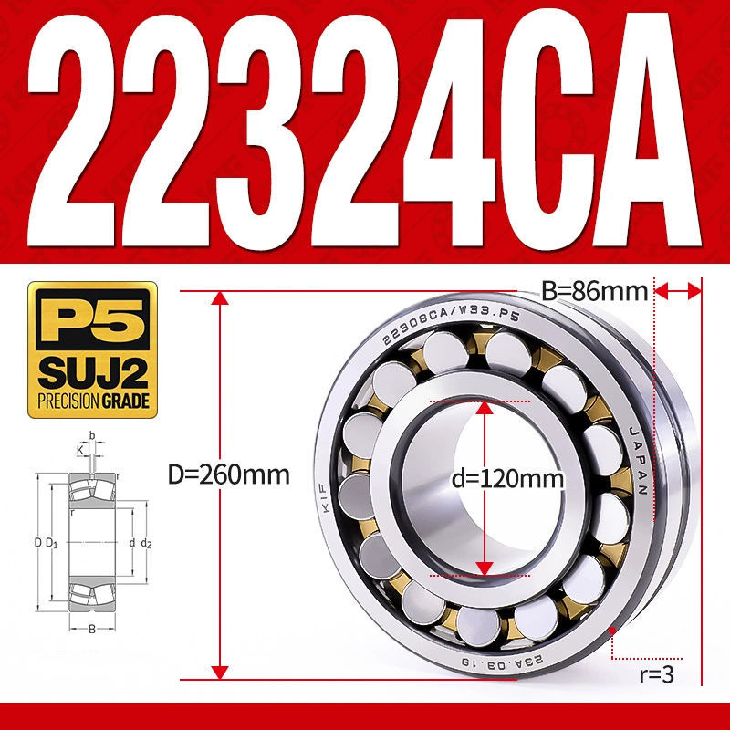 Vòng bi cà na tự lựa 2 dãy – bạc đạn cà na 22324CA/W33 (Có rãnh bôi trơn – lồng cách bi Đồng – kt 120*260*86 mm)
