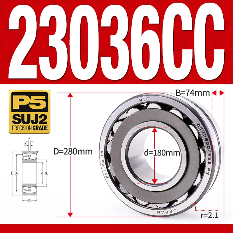 Vòng bi cà na tự lựa 2 dãy - bạc đạn cà na 23036CC/W33 (Có rãnh bôi trơn - lồng cách bi Thép - kt 180*280*74 mm)