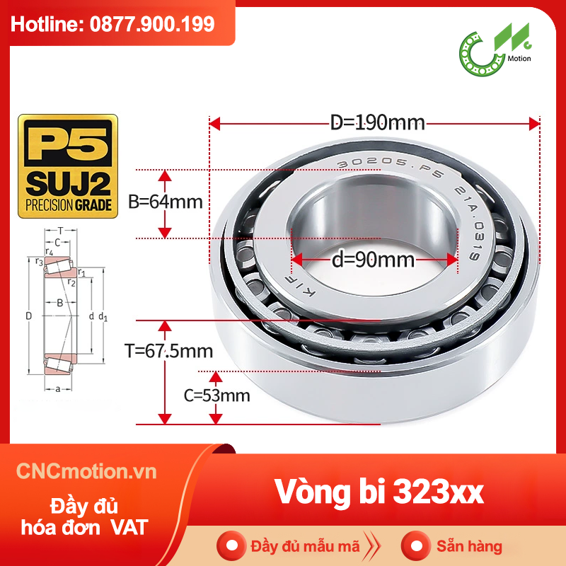 Gửi mã/đường kính trục & điều kiện làm việc để CNC Motion đề xuất đúng dãy – khe hở – bôi trơn. Hệ quy ước chung: 01=12 mm, 02=15 mm, 03=17 mm; từ 04 trở lên: 303xx bản rộng hơn 302xx ⇒ tải cao hơn, tốc độ giới hạn thấp hơn đôi chút; 302xx gọn cho không gian hạn chế. 322xx hướng tới tải nặng hơn so với 320xx cùng d; 320xx là lựa chọn phổ dụng, cân bằng tải–tốc độ–kích thước. 313xx cân bằng tải–tốc độ, ứng dụng truyền động; 323xx là dãy tải tăng cường cho môi trường nặng hơn 322xx. Lưu ý: Thông số D/B, tải định mức, giới hạn tốc độ & góc tiếp xúc khác nhau theo nhà sản xuất. Vui lòng cung cấp mã/ứng dụng để đối chiếu chính xác.Vòng bi con lăn côn 302xx • 303xx • 313xx • 320xx • 322xx • 323xx | Tapered Roller Bearings (TRB) | CNC Motion