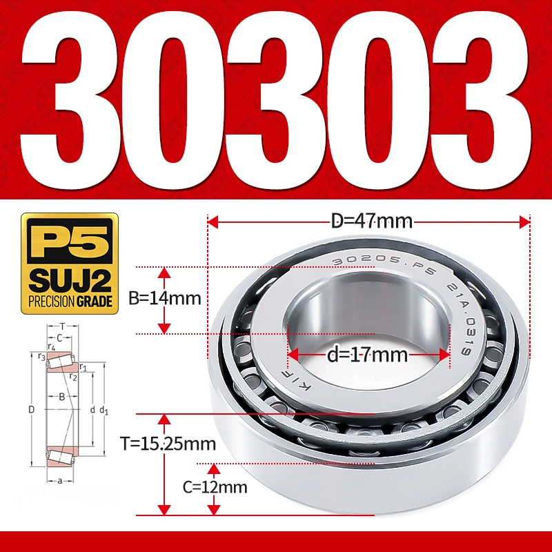 Vòng bi côn 1 dãy bi – bạc đạn bánh xe 30303 (Kích thước – 17*47*15,25 mm)