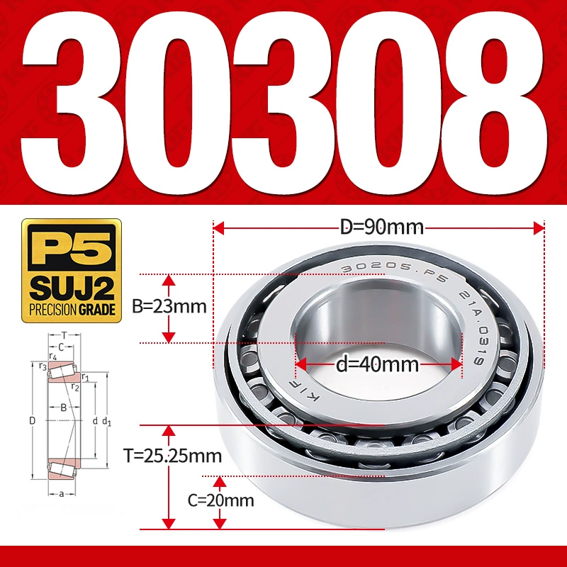 Vòng bi côn 1 dãy bi – bạc đạn bánh xe 30308 (Kích thước – 40*90*25.25 mm)