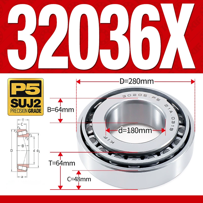 Vòng bi côn 1 dãy bi – bạc đạn bánh xe 32036X (Kích thước – 80*280*64 mm)