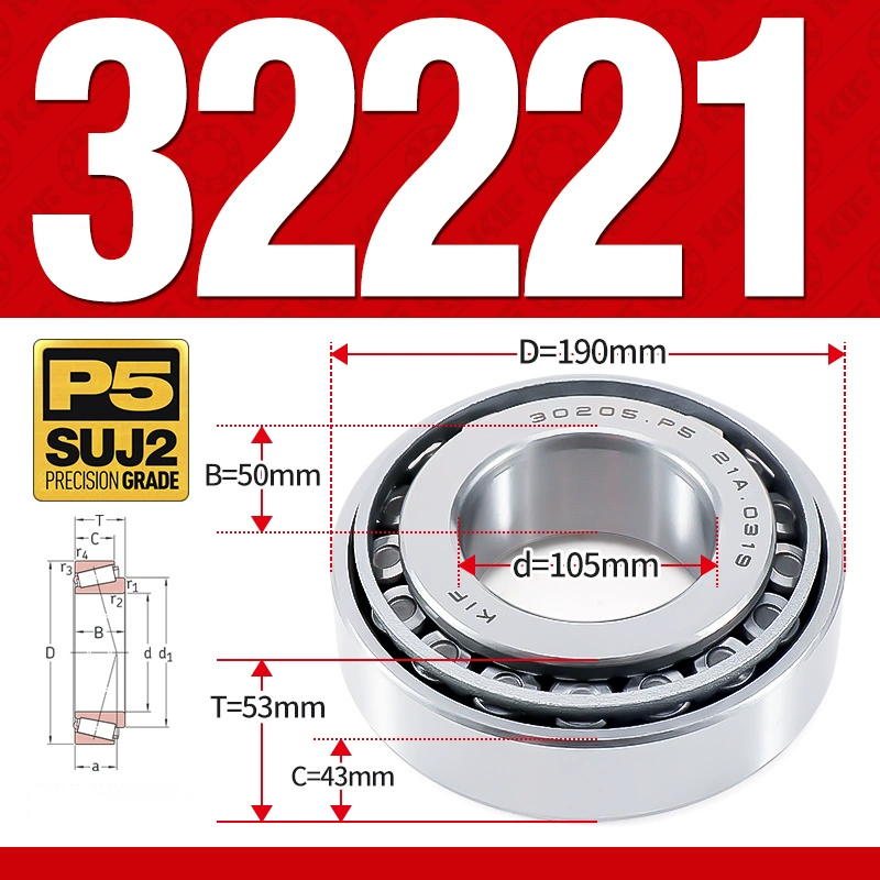 Vòng bi côn 1 dãy bi – bạc đạn bánh xe 32221 (Kích thước – 105*190*53 mm)