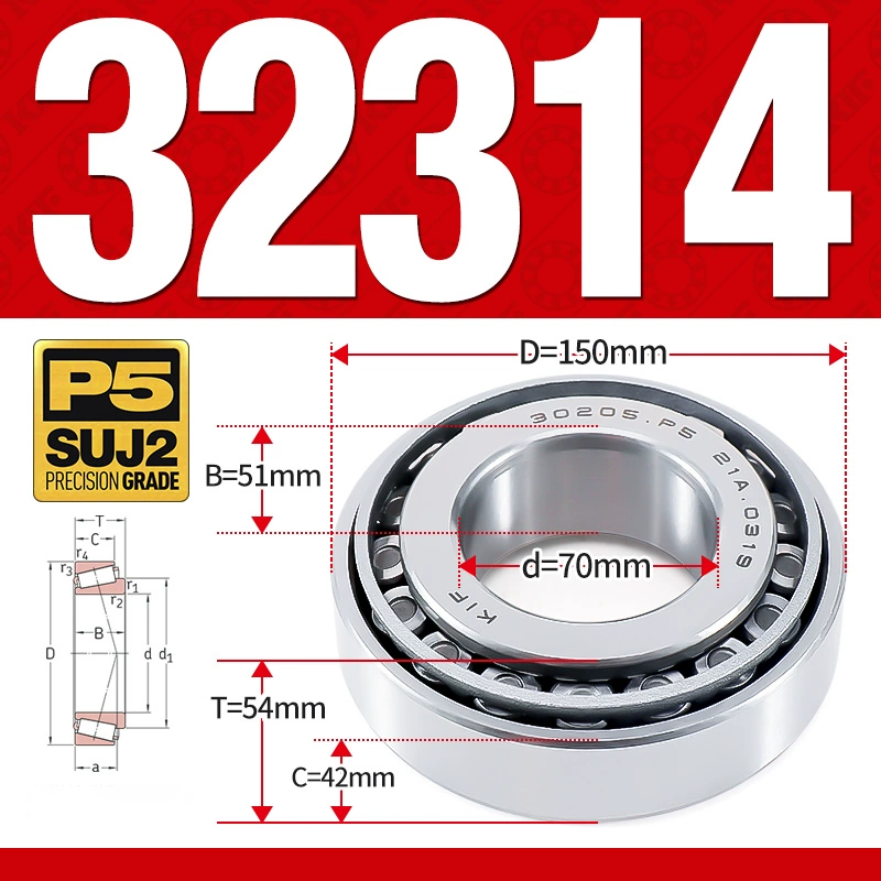 Vòng bi côn 1 dãy bi – bạc đạn bánh xe 32314 (Kích thước – P5】70*150*54 mm)