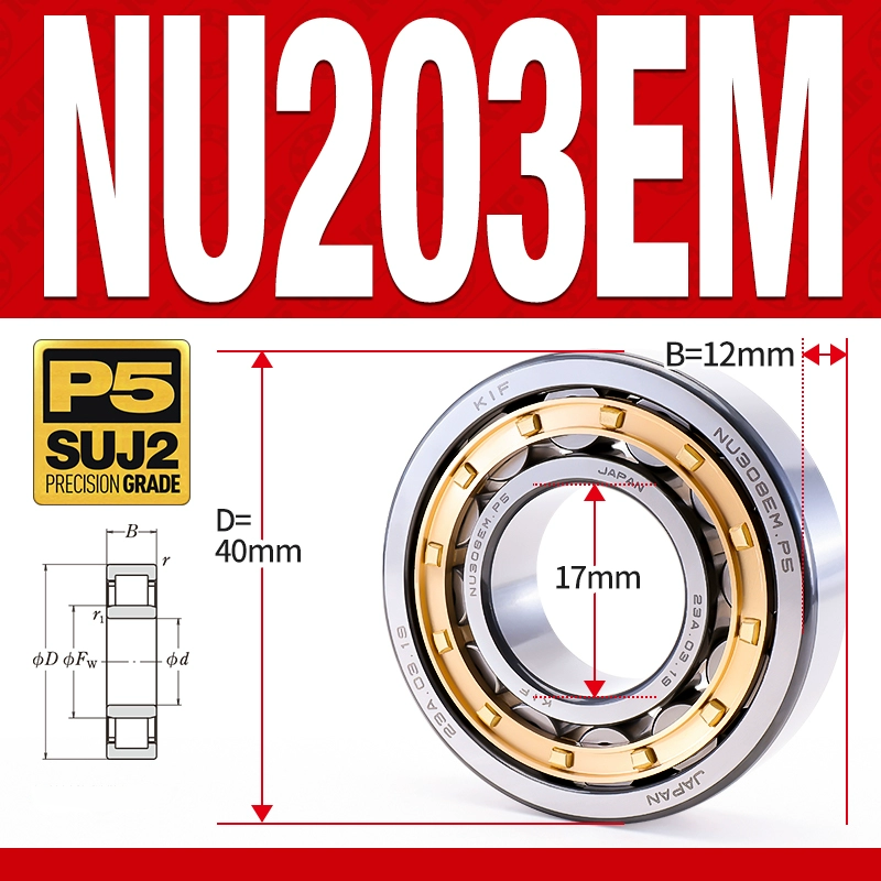 Vòng bi đũa – bạc đạn đũa trụ NU203EM (Trục tự do – lồng cách bi Đồng – kt 7*40*12 mm)