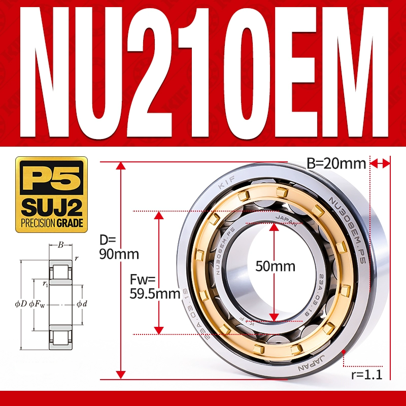 Vòng bi đũa – bạc đạn đũa trụ NU208EM (Trục tự do – lồng cách bi Đồng – kt 40*80*18 mm)