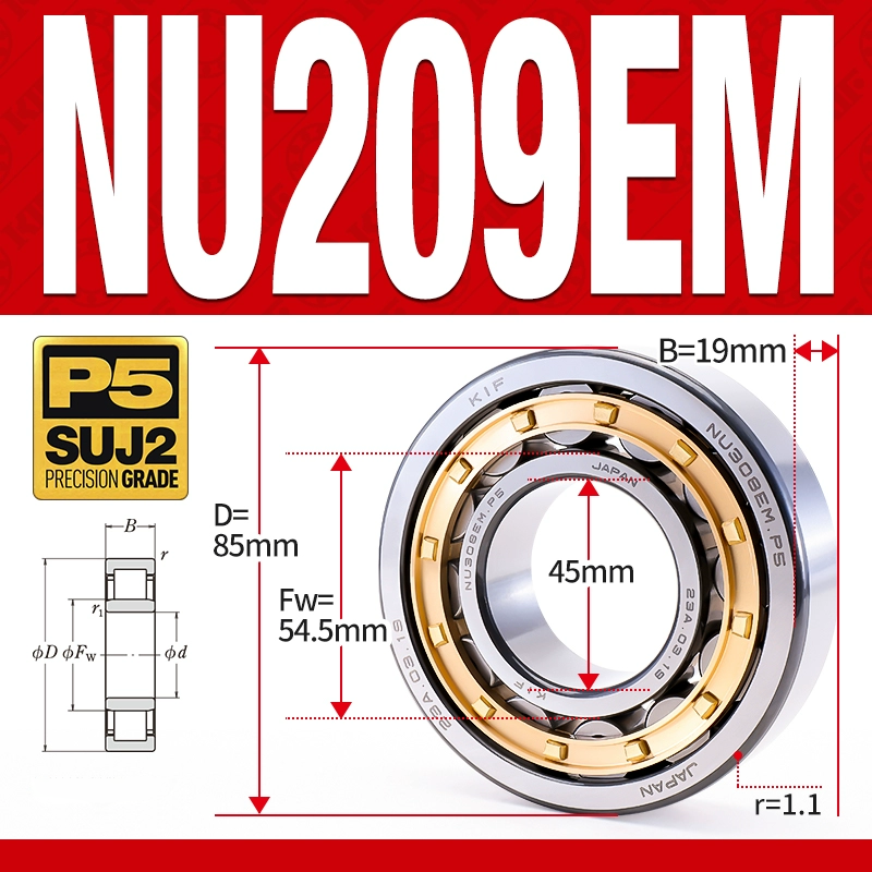 Bài viết này tập trung vào Vòng bi đũa trụ (Cylindrical Roller Bearings – CRB) với ba nhóm tiêu biểu: NJ22xx (định vị một chiều), NU202 & NU203 (ổ trôi). Bạn sẽ nắm được cấu tạo – phân biệt NJ/NU/NUP – nguyên tắc bố trí ổ định vị/ổ trôi, cách đọc mã & quy đổi đường kính trục (d), bảng mã tham khảo, tiêu chí chọn theo tải–tốc độ–môi trường, cùng hướng dẫn lắp đặt, bôi trơn & bảo dưỡng chi tiết.