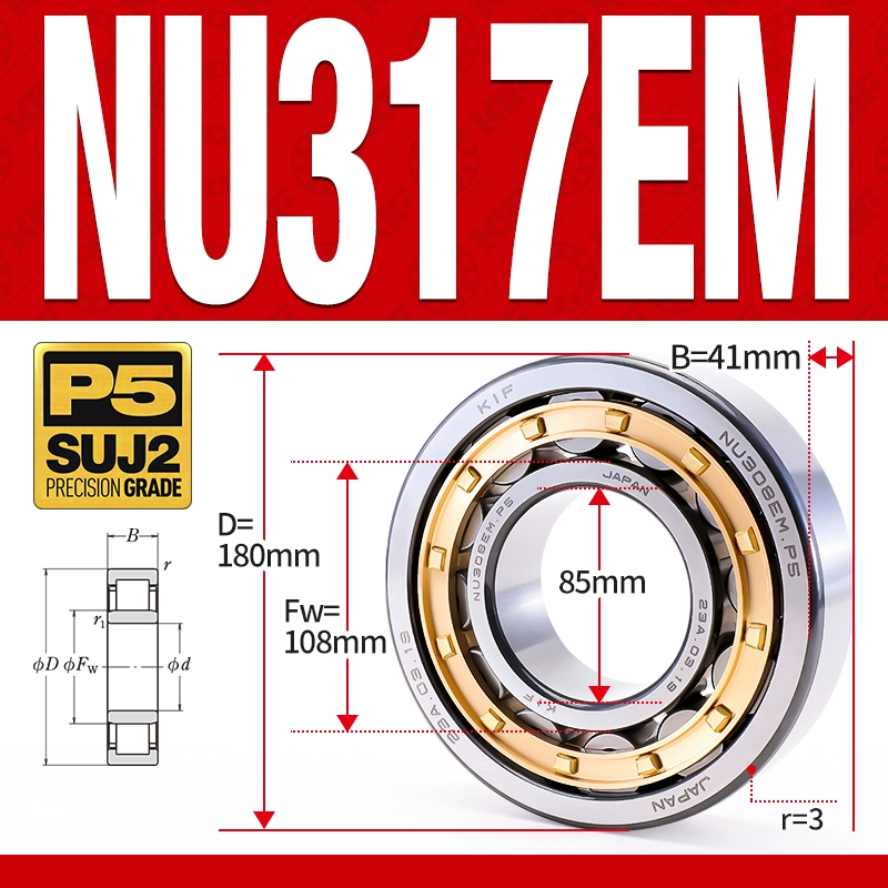 Vòng bi đũa – bạc đạn đũa trụ NU317EM (Trục tự do – lồng cách bi Đồng – kt 85*180*41 mm)