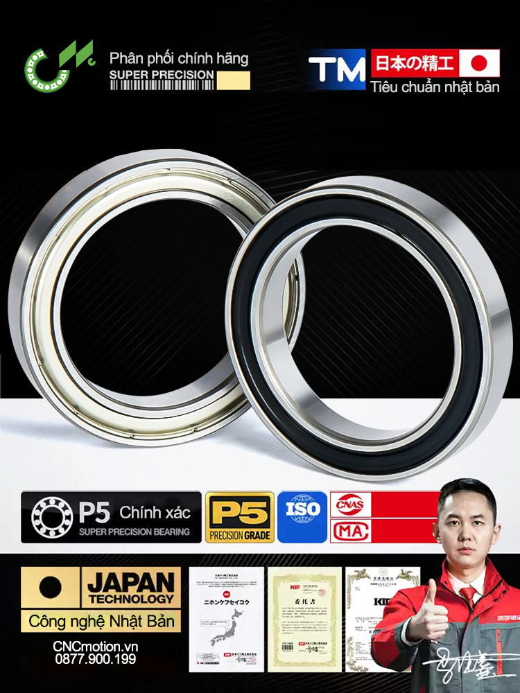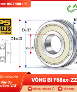 Trong khi đó, 68xx–69xx là nhóm mỏng/siêu mỏng, tối ưu cho tốc độ & không gian hẹp. Dòng 62xx là lựa chọn đa dụng, cân bằng giữa kích thước – tải – tốc độ. Kích thước dưới đây theo chuẩn phổ biến (mm). Cột Cr/C0 (kN) là giá trị tham khảo phụ thuộc hãng, vật liệu, cấp chính xác, mỡ bôi trơn… (vui lòng đối chiếu catalog thực tế khi đặt hàng). *Giá trị Cr/C0 là phạm vi tham khảo, không dùng để tính chọn cuối cùng. Vui lòng tra catalog của hãng bạn sử dụng. Dòng 63xx có vỏ dày, bi lớn → chịu tải cao hơn 62xx ở cùng đường kính trục. Phù hợp máy cơ khí, công nghiệp nặng. Dòng 64xx có kích thước lớn, chịu tải rất cao, dành cho ứng dụng công nghiệp nặng và motor công suất lớn. Dòng 68xx là siêu mỏng: quán tính thấp, RPM rất cao, phù hợp không gian hẹp và cụm quay nhẹ. Dòng 69xx là mỏng vừa, đa năng hơn 68xx, vẫn giữ lợi thế tốc độ cao, thích hợp motor nhỏ/thiết bị dân dụng và công nghiệp nhẹ. *Cr/C0 thay đổi theo hãng, cấp chính xác (P0…P5), kiểu cage và chất bôi trơn. Hãy tham chiếu catalog của cùng nhà sản xuất. Dụng cụ: ê tô/ống chèn đúng cỡ, thước cặp, mỡ NLGI #2, khăn sạch, cờ lê lực (khuyến nghị). Mẹo: với vỏ mỏng hoặc lắp từ mặt ngoài, chọn bản F… có bích để định vị mép nhanh, hạn chế trôi dọc trục. Lưu ý: Thông số tải Cr/C0 và tốc độ giới hạn thay đổi theo hãng/cấp chính xác/kiểu che chắn. Hãy gửi mã/ứng dụng để CNC Motion tư vấn đúng model.Vòng bi dòng 62xx – 63xx – 64xx – 68xx – 69xx | Bi rãnh sâu 1 dãy tốc độ cao – tải lớn | CNC Motion