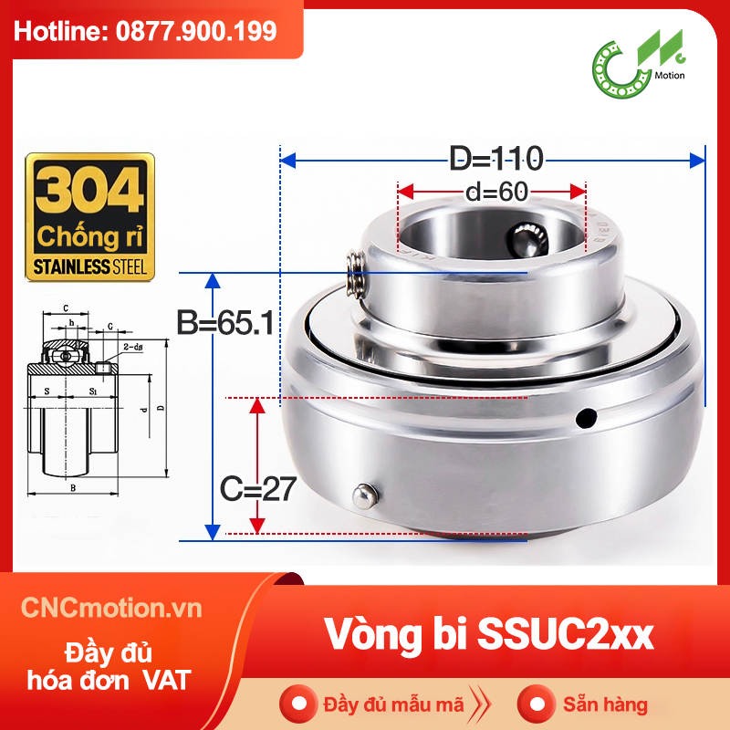 Đặt mua Vòng bi gối Inox 304 SSUC2xx