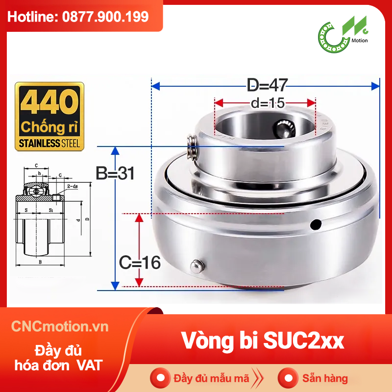 Đặt mua Vòng bi gối Inox 440C SUC2xx