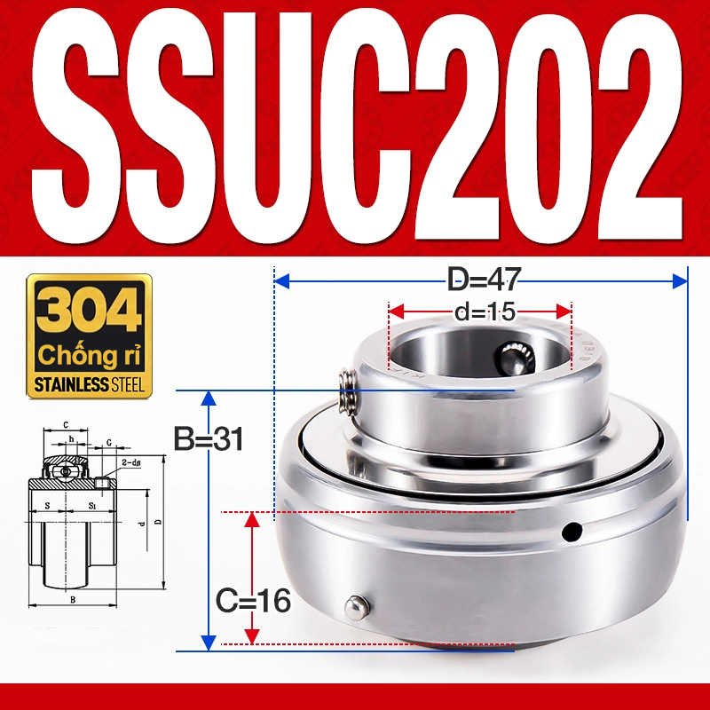 Vòng bi gối SSUC202 (Inox 304 – Đường kính trong 15 mm)