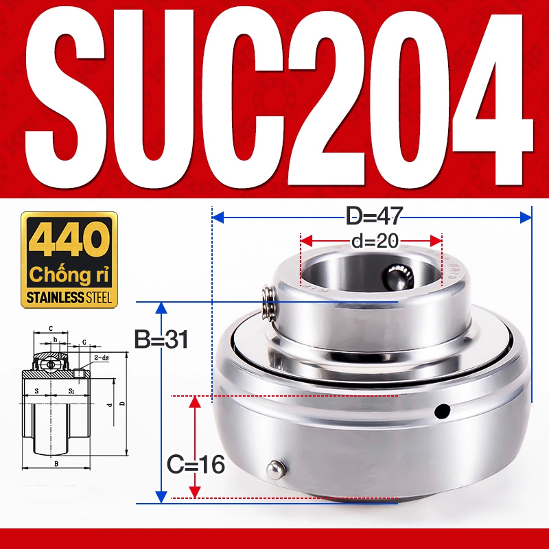 Đặt mua Vòng bi gối SUC204 (Inox 440C - Đường kính trong 20 mm)