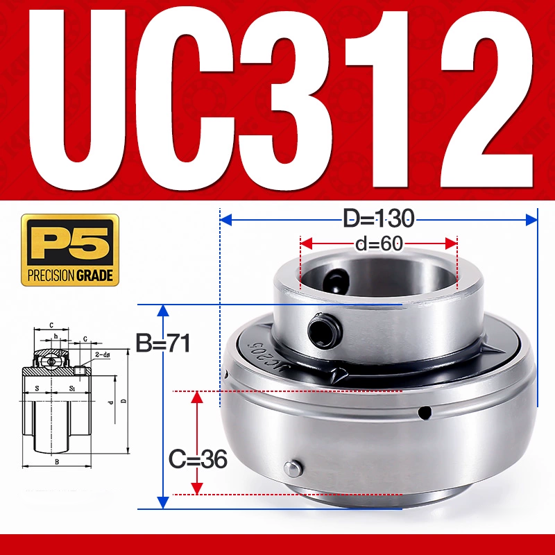 Vòng bi gối UC312 (Dày nặng – Đường kính trong 60 mm)