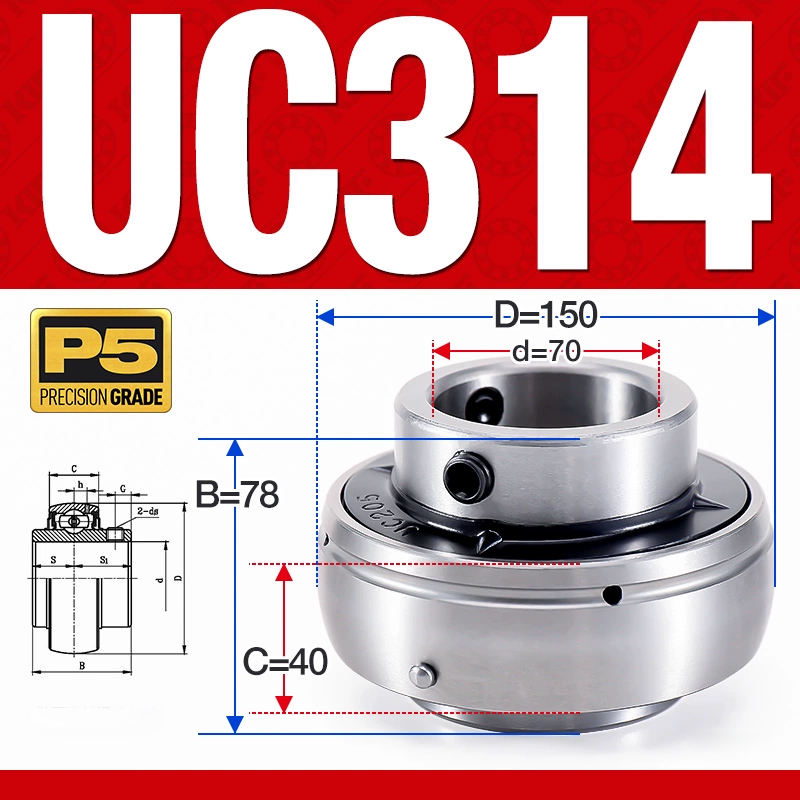 Vòng bi gối UC314 (Dày nặng – Đường kính trong 70 mm)