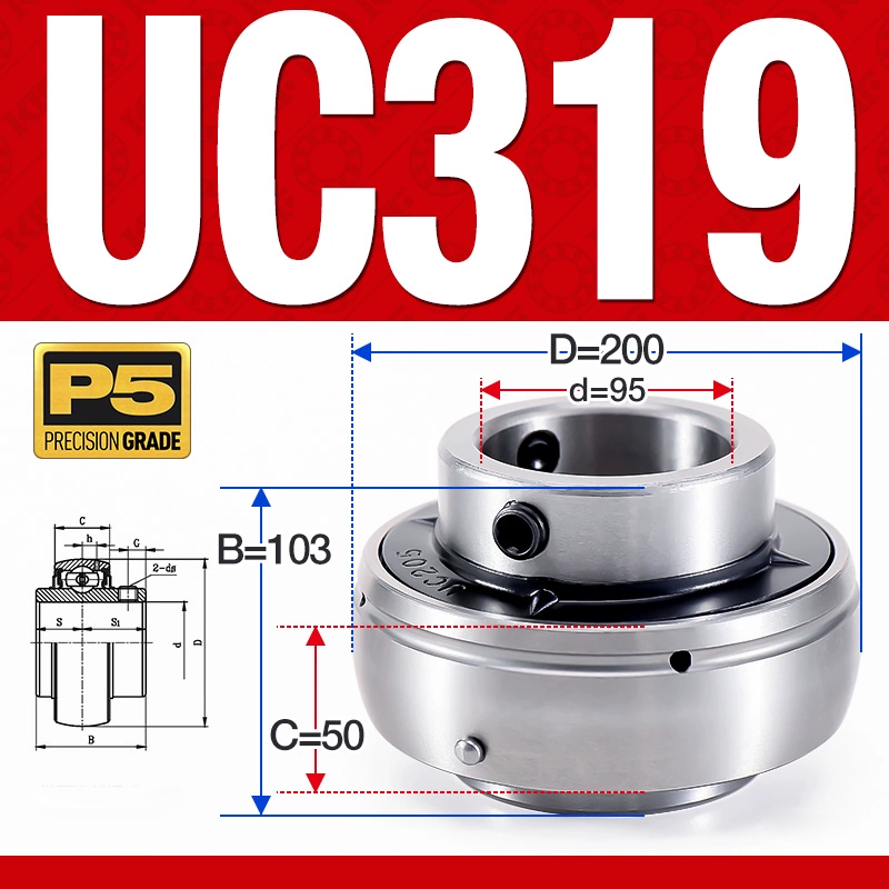 Vòng bi gối UC319 (Dày nặng - Đường kính trong 95 mm)