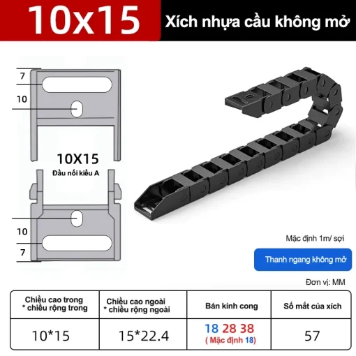 Xích nhựa cầu nắp hở XN10x15 NH ( Kích thước trong 10x15mm )