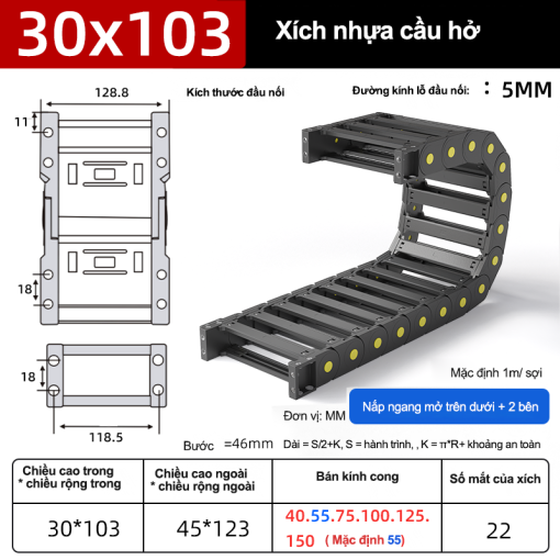 Xích nhựa cầu nắp hở XN30x103 CA NH ( Kích thước trong 30x103mm )
