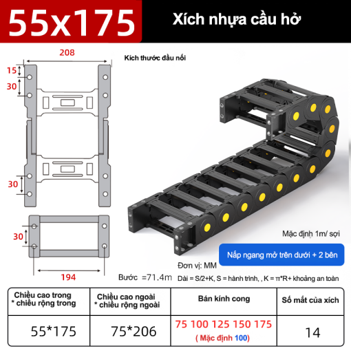 Xích nhựa cầu nắp hở XN55x175 CA NH ( Kích thước trong 55x175mm )